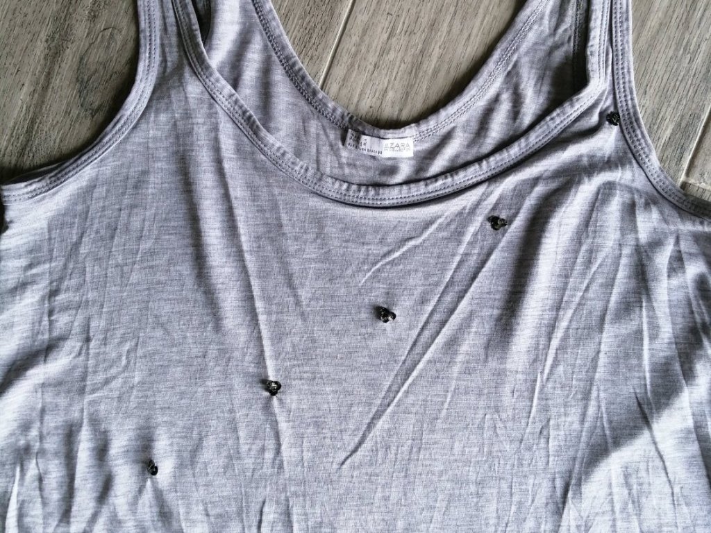 Et la, je me rends compte que ce petit débardeur basique (acheté chez Zara il y a au moins 4 ans) est criblé de trous ! 😱😱😱