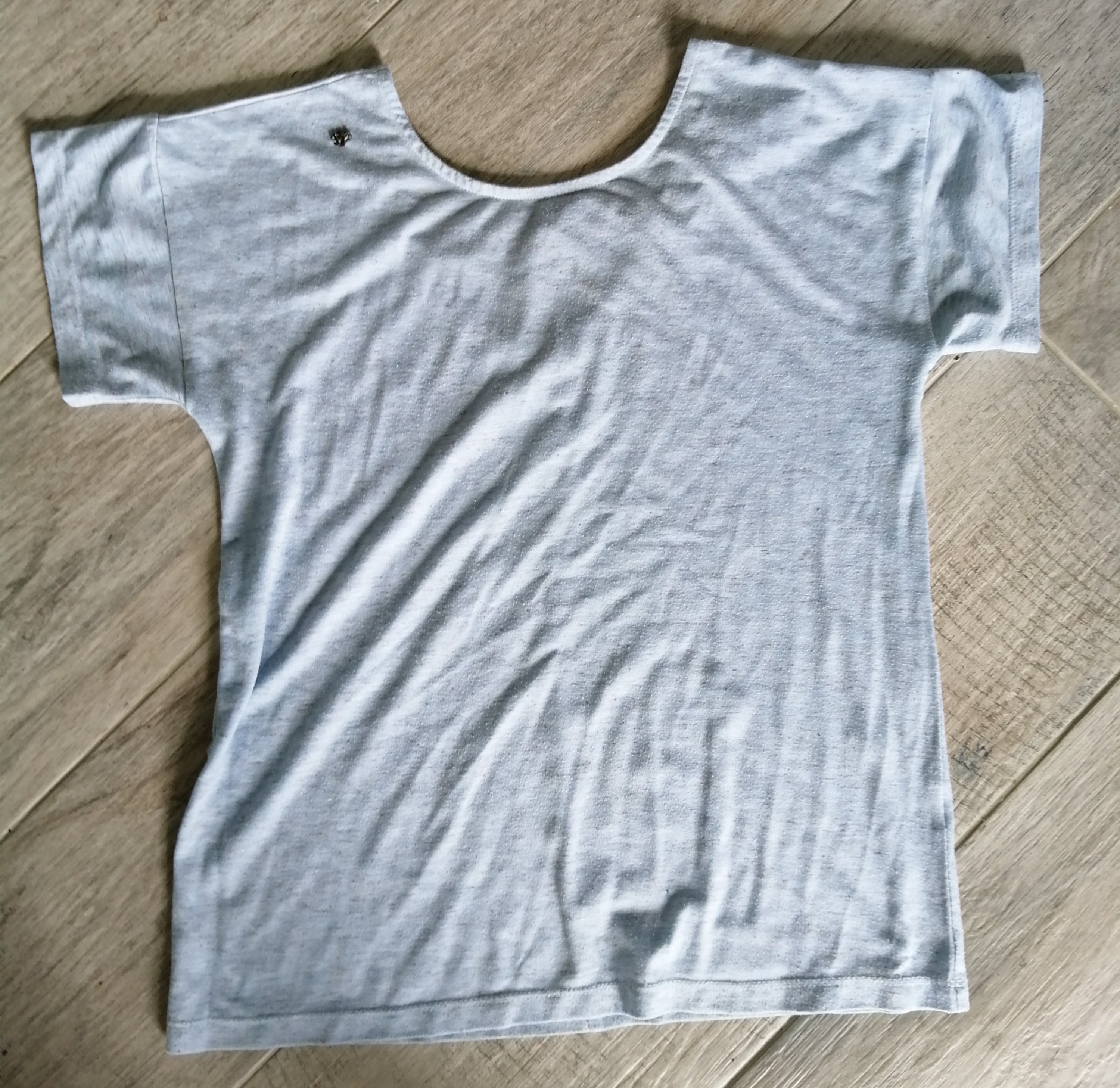 L’an dernier j’avais déjà utilisé ces petits strass pour réparer un autre t shirt plus dur à retrouver… (de chez KarlMarcJohn), que j’aime bien à cause du dos échancré. La répare est en haut à gauche sur le devant, et franchement j’adore…