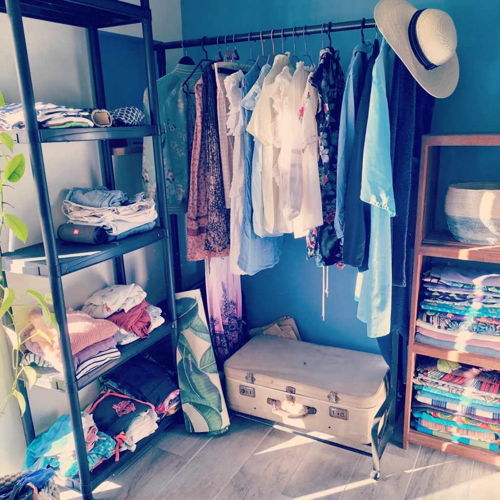 Pour ma part, mon dressing est exclusivement constituĂ© de piĂšces d’Ă©tĂ© car je vis en Guadeloupe. J’ai une collection pharamineuse de jupes, shorts, t shirts etc. MalgrĂ© qu’il soit Ă peu prĂšs rangĂ©, mon dressing Ă©tait trop plein, et quand j’ai commencĂ© le tri, je me suis rendue compte qu’il y avait beaucoup de piĂšces que j’adorais mais que je ne portais que trĂšs peu, car elles disparaissaient sous le reste.