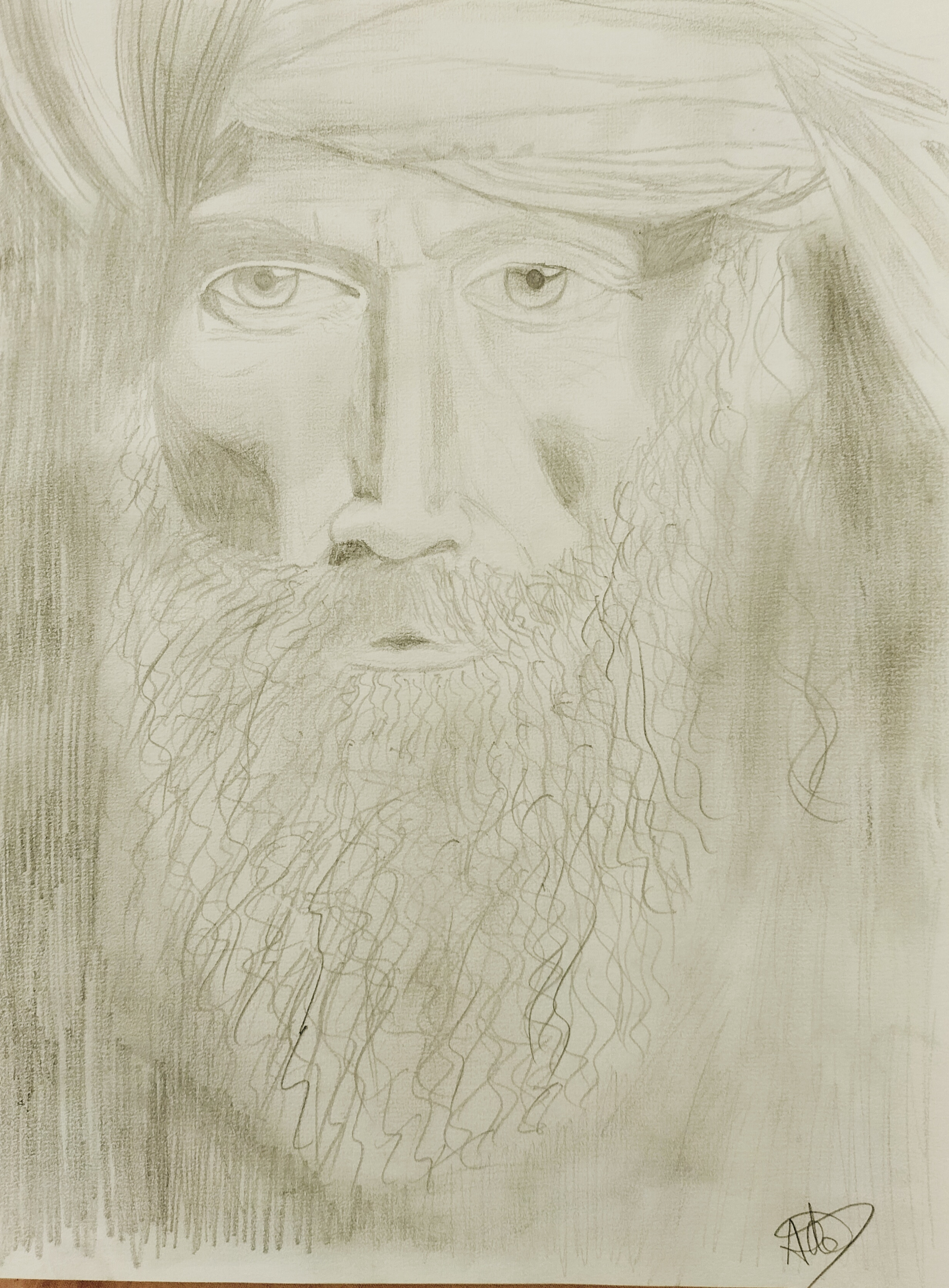 D’après une photo Pinterest qui m’a servi de modèle, j’ai fait un portrait au crayon d’un vieux sage au regard inspirant…
